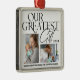 This charming Christmas Ornament design features a minimalist aesthetic with a touch of festive elegance. The front showcases a beautiful collage of family photos with their newborn baby. The Ornament announces the arrival of their "greatest gift" in 2024, making it a perfect way to share the joy of their new addition with loved ones this holiday season. The simple yet elegant design with a clean white background and black lettering creates a warm and inviting feel.