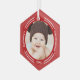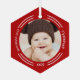 Minimalist Baby Photo Red First Christmas Glass Ornament