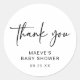 This stylish baby shower round sticker features a classic black and white colour palette and a modern font. It is perfect for a minimalist or boho themed baby shower and you can pair it with anything in the EVIE collection for a cohesive look.