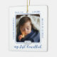 Minimalist Babys First Hanukkah Birth Stats Photo Ceramic Ornament