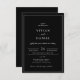This minimalist black all in one wedding invitation is perfect for a simple wedding. The modern romantic design features dark black and white typography paired with a rustic yet elegant calligraphy with vintage hand lettered style. Customisable in any colour. Keep the design simple and elegant, as is, or personalise it by adding your own graphics and artwork. Save paper by including the details on the back of the wedding invitation instead of on a separate enclosure card. Include the RSVP info as well if your guest will be replying electronically (optional).