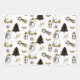 Beautiful and cute black and gold Christmas pine tree, stars and Christmas doodles wrapping paper set in modern, minimalist style.