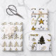 Minimalist Black And Gold Christmas Tree And Stars Wrapping Paper Sheet