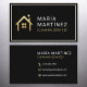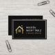 A modern minimalist black and gold business card design featuring a sleek house logo and elegant typography. Perfect for cleaning services, housekeeping, maid services, janitorial companies, and home care professionals. The clean back layout with bold contact details and refined gold accents creates a polished, luxury impression for your brand.