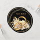 A beautiful minimalist black and gold wedding invitation with a circle element and gold colored text.