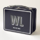 Minimalist Black and Grey Personalised Monogram Metal Lunch Box