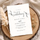 Embrace timeless elegance with this boho-inspired minimalist wedding invitation, featuring delicate script calligraphy against a clean white backdrop. The black script typography of "Wedding" takes centre stage, accented by subtle bohemian motifs. Fully customisable with your names, date, time, venue, and reception details, this design effortlessly balances modern simplicity and free-spirited charm.