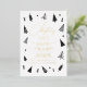 This minimalist Christmas party invitation features boho or hygge Christmas trees and calligraphy script text. The back is a watercolor black and white buffalo plaid.