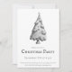 Minimalist elegant Christmas invitation with a Christmas tree illustration in black and white. Illustrated and designed by Patricia Alvarez.