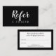 Minimalist black and white elegant script referral card featuring stylish hand-drawn script typography. Personalise by adding your contact information on the reverse with your referral offer. Designed by Thisisnotme©