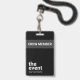 A minimalist black and white event badge for crew members, VIP and organizers. This event badge is also ideal as an all access pass. Feel free to personalise the colour scheme of this simple but elegant event badge or add more information to either the front or back side. Should you need help at any time of the process, please contact us. We are here to help.