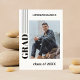 Unique and trendy minimalist style congratulations graduate announcement and celebration party invitation card, framed with a stylish black abstract stripes border pattern on a crisp white background. With room to customise or personalise with a photo, the name of the graduate, class graduation year, high school, future college or university name, and celebration party event information. Let the family, friends, and neighbours know there is a happy graduate ready to conquer the world, and invite everybody to come to celebrate the happy event with you!