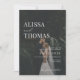 Modern wedding invitation with minimalist typography design in black and white colour. Easily personalise with your information and photo for custom wedding invitations.