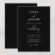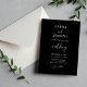 Introduce your wedding with timeless sophistication using our minimalist black and white modern wedding invitation. This versatile design is perfect for a range of events, including elegant black-tie ceremonies, stylish city weddings, and chic modern receptions. The clean black and white colour palette, paired with a contemporary minimalist layout, creates a refined look that complements any wedding theme. Whether you're planning a formal evening affair or an intimate celebration, this customisable invitation sets the perfect tone for a day filled with elegance and modern charm.