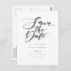 This minimalist save the date card features an elegant script save the date above your details set in elegant typography. The reverse has additional save the date details, including your wedding website, with your return address and space for your recipient's address. Designed by Thisisnotme©