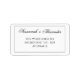 An elegant black and white address label, our 'Minimalist Black and White Wedding' address label - especially created as part of a matching invitation suite that you can find on this page - has the personalised names of the bride and groom in a decorative script font, and the address in a plainer, more contemporary typography. All details are contained inside a simple black rectangular box, making this a very modern and minimalist return address label, yet retaining an elegant, chic style.
