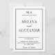 A Minimalist Black and White Wedding Invitation features a sleek, modern design with a monochrome colour palette. Clean lines, elegant typography, and ample white space create a timeless and sophisticated look. Perfect for a chic, contemporary wedding with a touch of understated elegance.