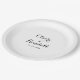 This minimalist black and white wedding paper plate is perfect for a rustic wedding reception. The design features a beautiful black font in a white white background to embellish your event.