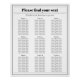 Our 20"x25" seating chart from the minimalist collection offers a fully customisable black and white design, ensuring a perfect fit for your wedding theme. With elegant serif typography and a clean layout, this sophisticated chart helps guests easily find their seats, adding a touch of refinement to your reception decor.