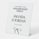 Understated yet striking, this luxe minimalist pedestal sign adds a refined touch to your engagement party setup. Designed in classic black and white with modern, spacious typography, it's perfect for displaying short messages — whether it's a welcome note, a bar sign, or a thoughtful quote. Printed on high-quality material and paired with a sturdy stand, it enhances your decor with elegance and simplicity. Fully customisable to match your suite.