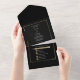 Minimalist Black Background Gold Frame Wedding All In One Invitation
