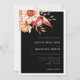 Create your own personalised wedding invitations featuring elegant floral design. Add your custom details of your special day in minimalist chic typography. This wedding invitation features boho chic fall floral of watercolor dahlia flowers and autumn botanical leaves on black colour background.