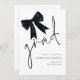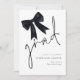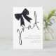 Minimalist Black Bow Script Grad Graduation. Available digitally and printed. This design has informal set handwriting style script for the main header, grad, and easy to personalise typography to the bottom right hand side with your details. With a stylish watercolor coquette bow illustration.
