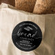Minimalist Bread Labels in a modern black and white design with elegant calligraphy font, space for your business name, website and ingredients. Use this round bakery sticker to create branded food license ingredients stickers for Sourdough Bread, Rye Bread, Wheat Bread and more!