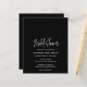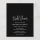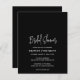 Modern black budget bridal shower invitation featuring a simple design with the event title in an elegant script typography and your event details in a minimalist sans serif font. This chic invitation works well with any style of bridal shower.