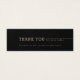 Modern minimalist text design in brown on colour editable black background, custom your own business information and optional company logo on the back, clean and simple, unique professional thank you for your purchase insert for customer.