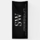 Minimalist black and white Business Promotional Backdrop Banner, featuring space for your monogram or logo, business name, tag line and custom text. Create branded promotional banner for your craft market stand, pop-up shop or boutique with this simple, yet elegant, banner design. Choose from outdoor or indoor banner fabric and make your custom shop banner.