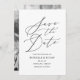 Announce your upcoming wedding in style with our Minimalist Calligraphy photo save the dates. The black and white save the date cards feature the words "Save the Date" in an elegant calligraphy script with your names, wedding date, & location featured below. The back of the save the dates features your favourite engagement photo.