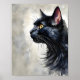 This minimalist black cat art print captures the quiet elegance and timeless beauty of a feline in profile. With a soft gray background and refined watercolor-style textures, this artwork offers a calm, sophisticated aesthetic that complements modern, minimalist, and neutral interiors.