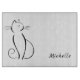 Minimalist black cat on a white background cutting board. Personalise this elegant cutting board with your name.