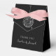 These trendy yet elegant black wedding or bridal shower favour boxes feature a modern and minimalist style, with handwritten script and classic text. A retro hand-drawn disco ball is featured in a subtle illustration.