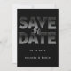 A minimalist design featuring black glitter drip letters forming the words SAVE DATE on black background with silver-coloured typography. Send this elegant and chic Save the Date card to your friends and family to announce your upcoming nuptials. You can add your favourite photograph to the back of the card and customise the additional text to suit your style.