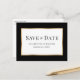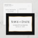 Elegant black and gold wedding save the date postcard featuring wedding details inside a gold frame. Matching items available.