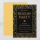 A sleek, modern holiday invitation with black background and gold foil accents. Ideal for formal gatherings and upscale holiday events.