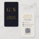 A bold and timeless business card design featuring a striking black background with champagne gold accents. The GS monogram stands out with elegant typography, while the back includes clean contact details and a QR code for instant digital connection. Perfect for consultants, entrepreneurs, and professionals who want a modern luxury brand identity.