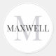 Minimalist Black Grey Custom Monogram Classic Round Sticker