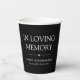 Memorial service paper cups in black with white text. In loving memory written in a standard font. Personalise by writing your loved one's name and years living.