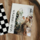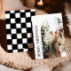 This simple and modern family photo card features minimalistic elements including an arch photo frame, serif typography and organic black and ivory checkers. Send your holiday love in a classic traditional style with this adorable photo collage holiday card.