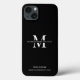 Minimalist iPhone case in black and white with space for your business logo or monogram as well as your business contact details. Switch up your phone case with this modern custom phone cover, perfect to promote your small business.