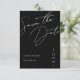 Minimalist Black Script Typography Wedding Save the Date Card. Elevate your wedding with our modern black script typography wedding save the date, a timeless choice for your special day. This beautiful wedding card seamlessly combines classic and elegant design elements with a simplistic white aesthetic, creating a striking contrast that sets a formal and sophisticated tone. The simplicity of the black colour scheme and the elegance of the white typography make this save-the-date a perfect choice for couples seeking a simple yet impactful statement. Choose this card to let your love shine in a classic and modern fusion