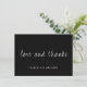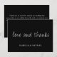 Customisable wedding Thank you card. Featuring Love and Thanks in script in white font on a black background. With a customisable message on the reverse.