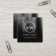 An elegant and minimalist black business card featuring a black shiny texture, with your initials as a logo, suitable any profession. Include your social media handles as well or simply delete the icons that aren't needed.