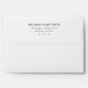This wedding envelope features a minimalist design with a clean, centered layout on a white background. The black serif typography offers a classic and elegant touch, emphasizing readability and sophistication. With ample negative space, the design conveys a professional and straightforward mood, perfect for formal occasions. Customizable text fields allow personalization for names, addresses, and contact information, making it ideal for weddings or other significant events.
