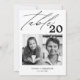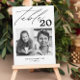 A different way to show your wedding table numbers. Designed to match the "Vivian" Collection. This template includes 2 pictures that could be when you were kids or as a couple, table number in. modern calligraphy typography, couple's names and wedding date.