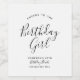 Minimalist "Cheers to the Birthday Girl" wine bottle label in simple black and white with modern, chic and elegant typography style. All text is customisable. Personalise with age, name, year of birth, and short greetings. Perfect gift for her.