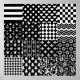 Black and White Minimalist Mixed Patterns of Stripes, Polka Dots, Hearts, Check, Anchor, Blob, Harlequin rhombus, Zigzag Chevron, crowns, fleur-de-lis, floral illustration, Houndstooth Tree illustration, Paisley and Irregular Abstract Designs